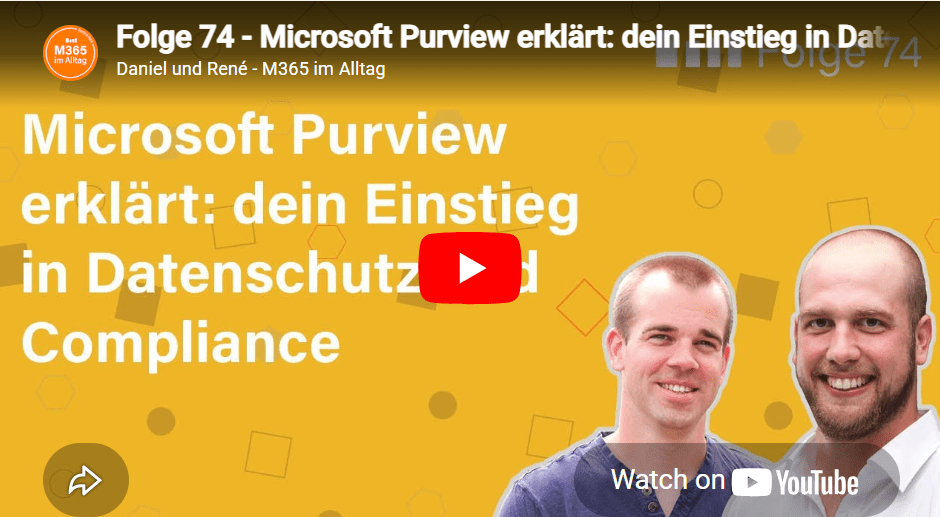 Im YouTube Channel von René und Daniel erkläre ich, wie du mit Microsoft Purview den Überblick über deine Daten behältst und so für mehr Datensicherheit und -governance sorgst.